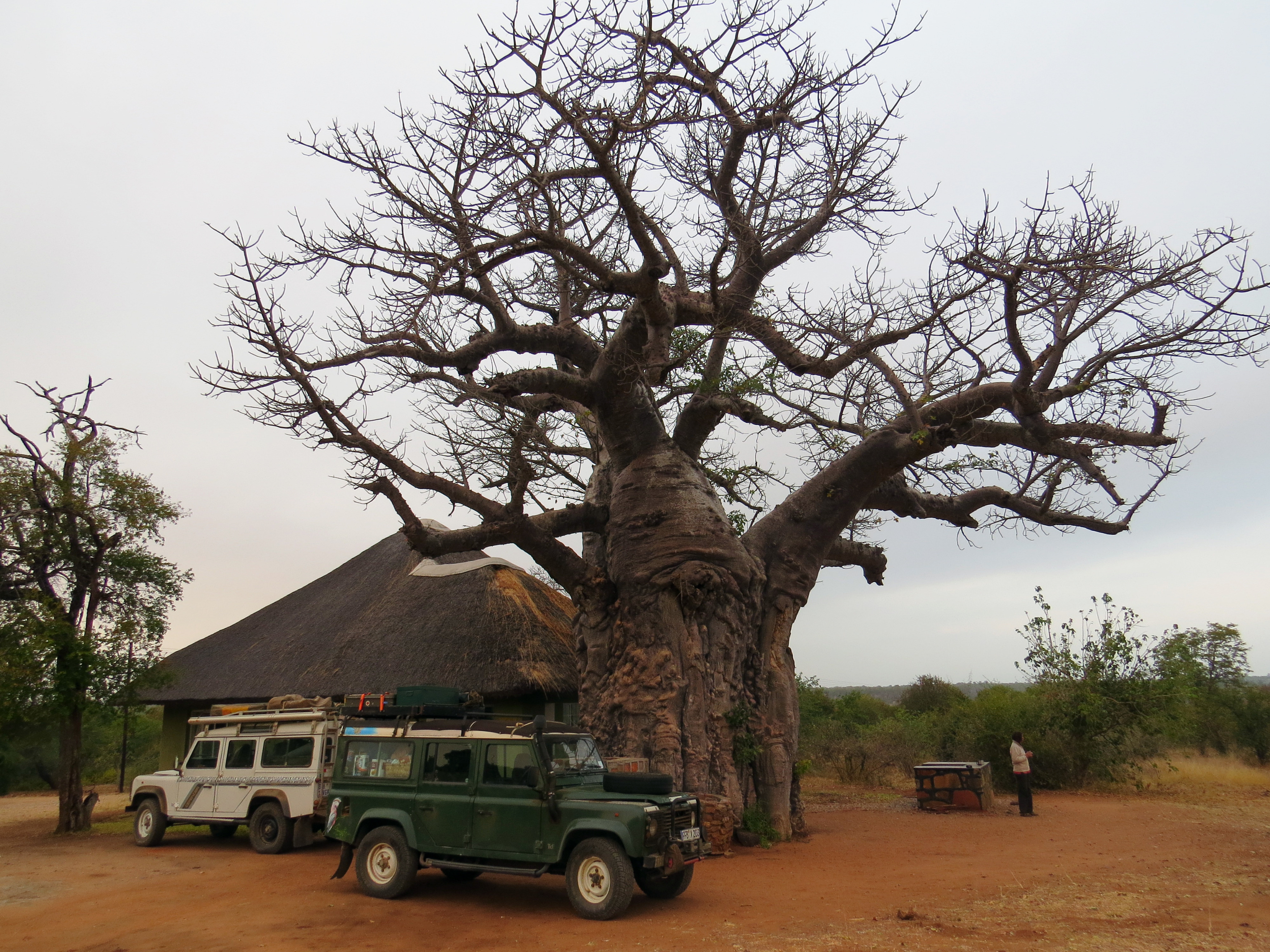 Wir sind unterwegs mit zwei Landrover Defendern in ihren besten Jahren (Jahrgang 1994). Der eine Landy kann oben geöffnet werden und bietet somit 360 Grad Rundumsicht auf Safari!